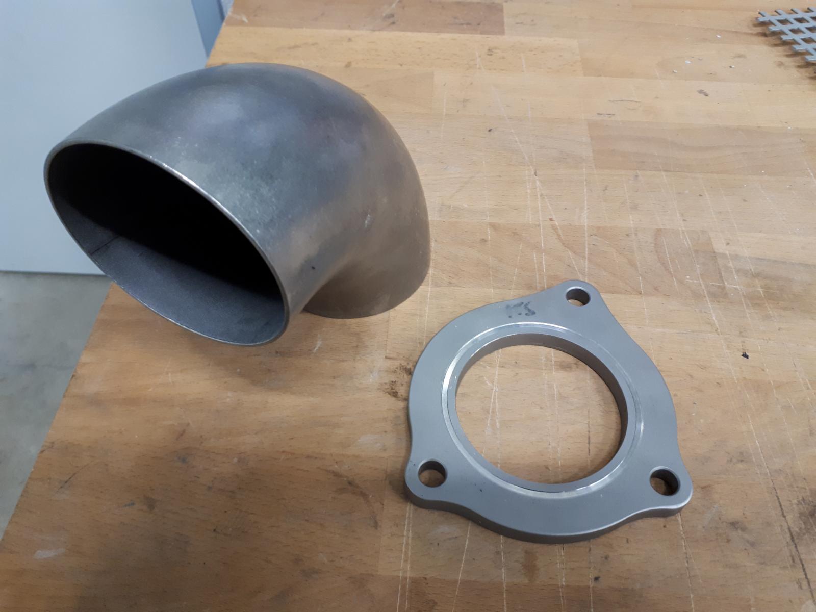 Die Export-Lader haben auch einen größeren Flansch zum Vorkat hin. Da wir schauen wollten, dass das Ganze performant bleibt, habe ich kurzerhand einen passenden Flansch konstruiert, ihn mir lasern lassen und dann von Turbolader bis zur Greddy-Abgasanlage mit einem 100-Zellerkat und 3,5“-Rohre die gesamte Anlage vervollständigt. (Hier sollte noch erwähnt werden, dass der Kat nach einer gewissen Zeit, mit sehr vielen Volllastanteilen, dann doch irgendwann die weiße Flagge gehisst hatte, sodass wir dann doch mit 1-Zellen-Kat-Technologie unterwegs waren.)