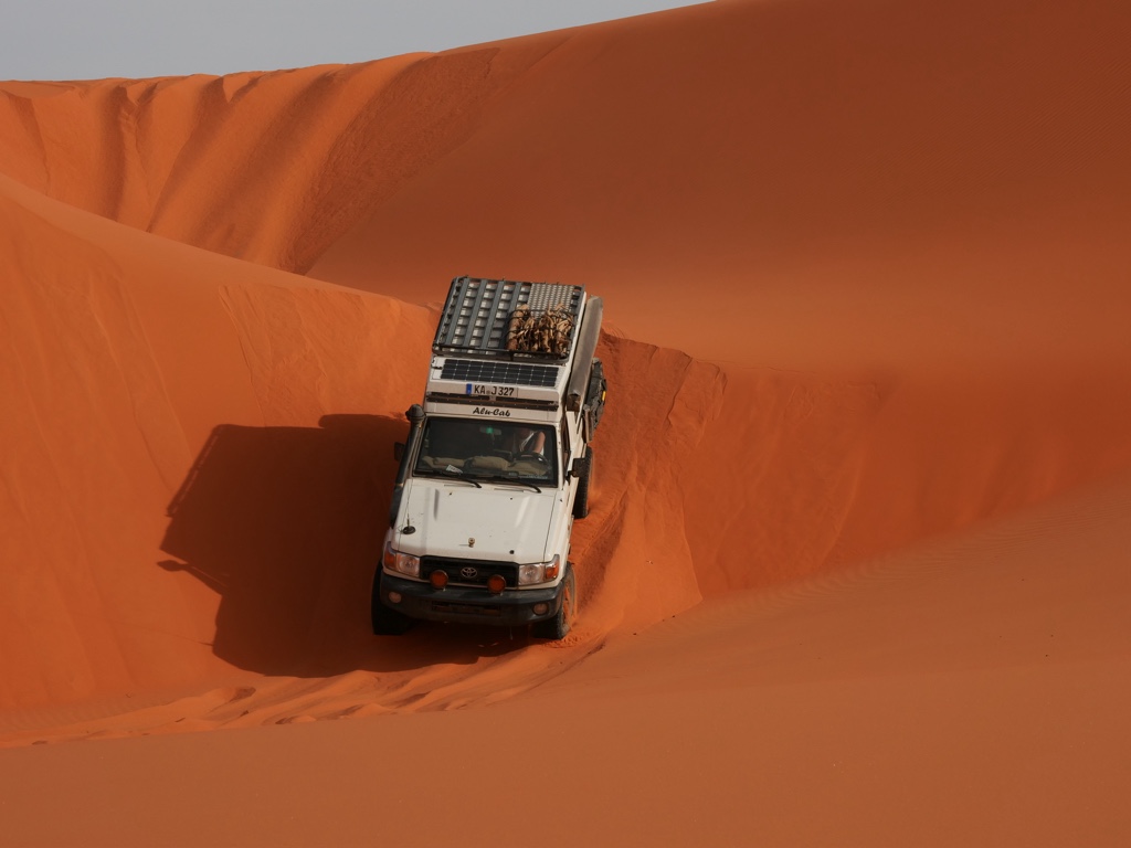 Wegen dem LandCruiser - Das ist mein GRJ78 mit dem 1GRFE V6 Benziner - artgerecht in den Dünen Algeriens gehalten macht der richtig Laune....