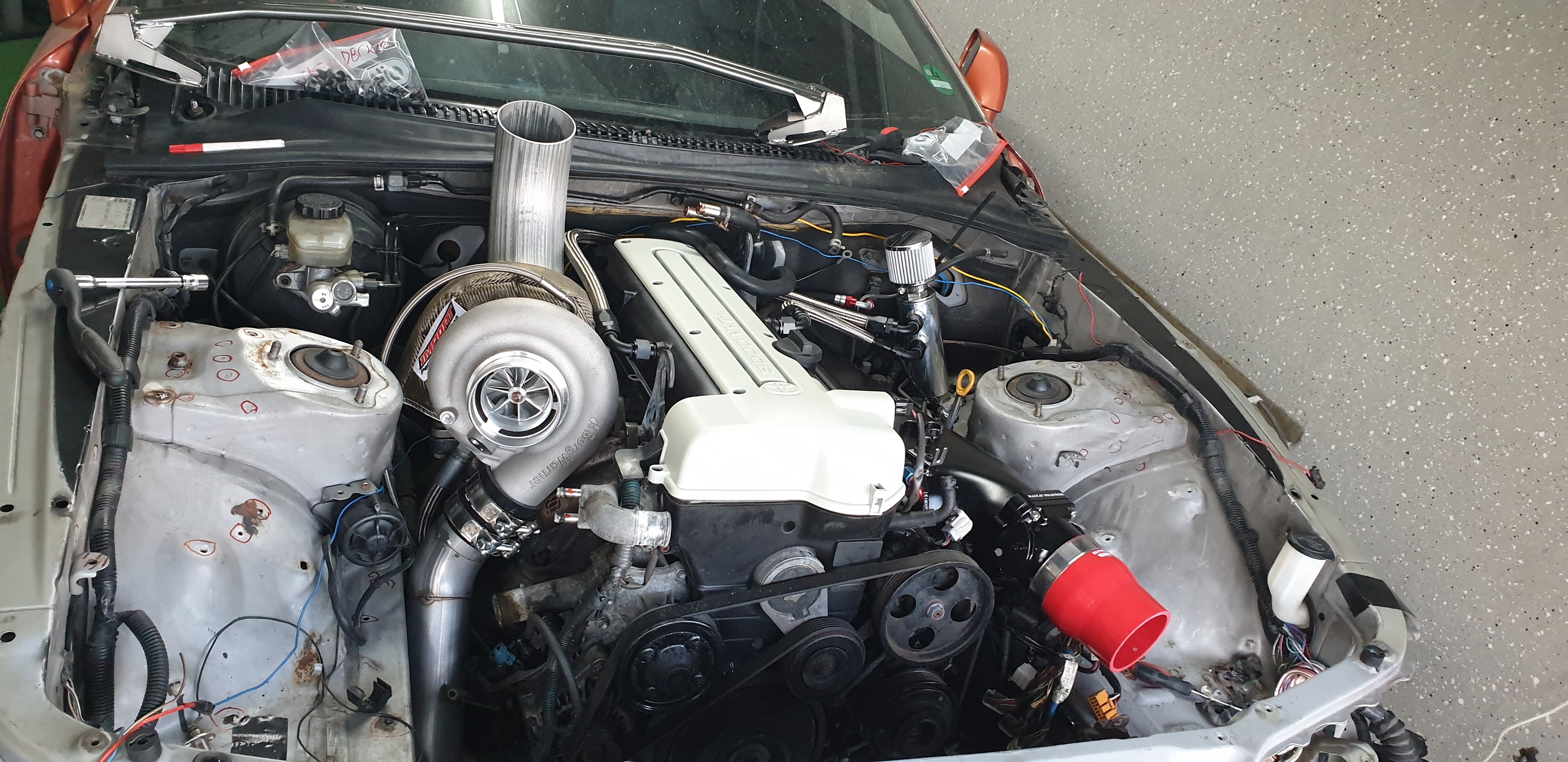 Aktuell ist der GTE Motor drin und ich bin am Bau der Ladeluftverrohrung und Auspuffanlage.