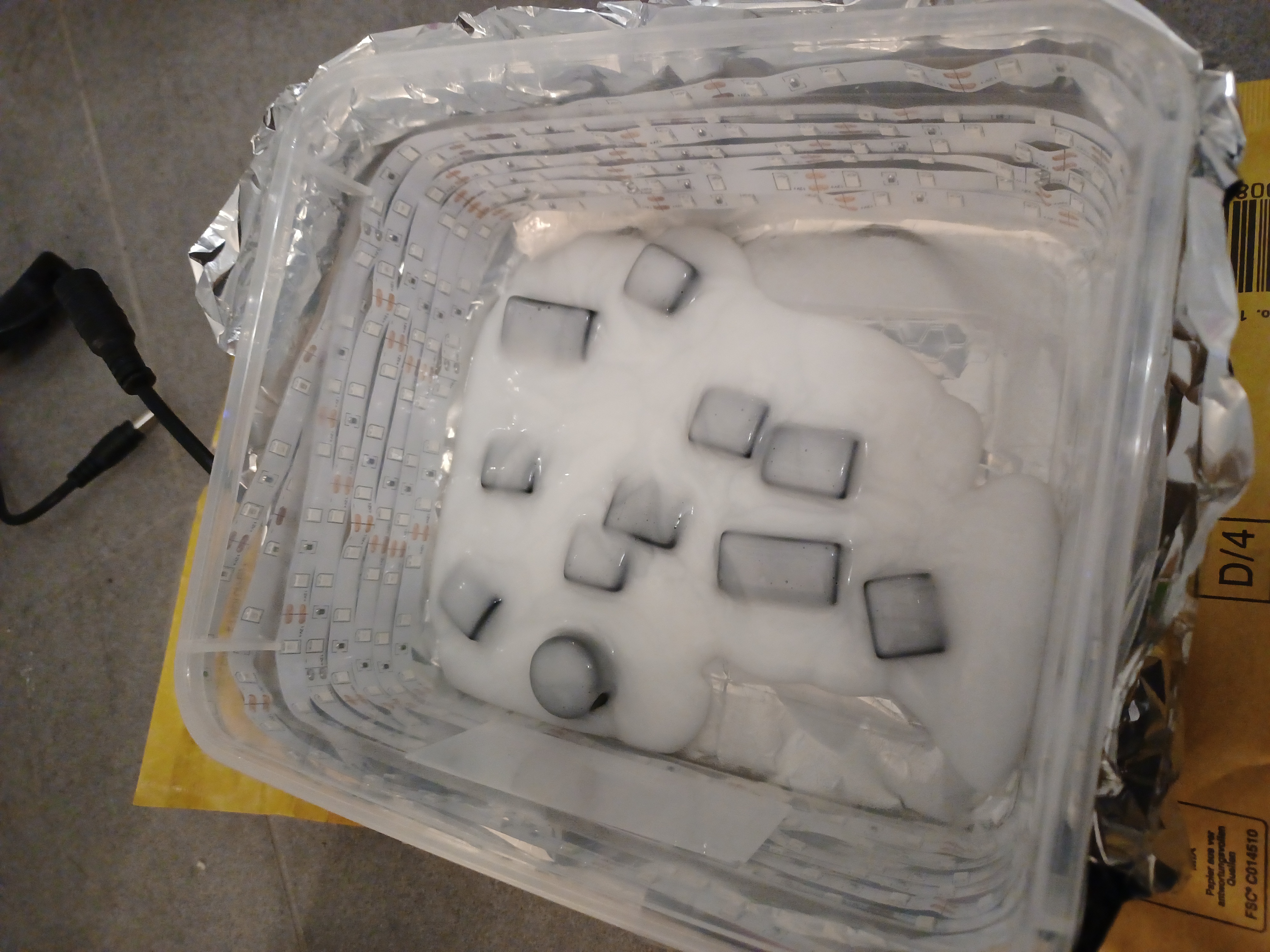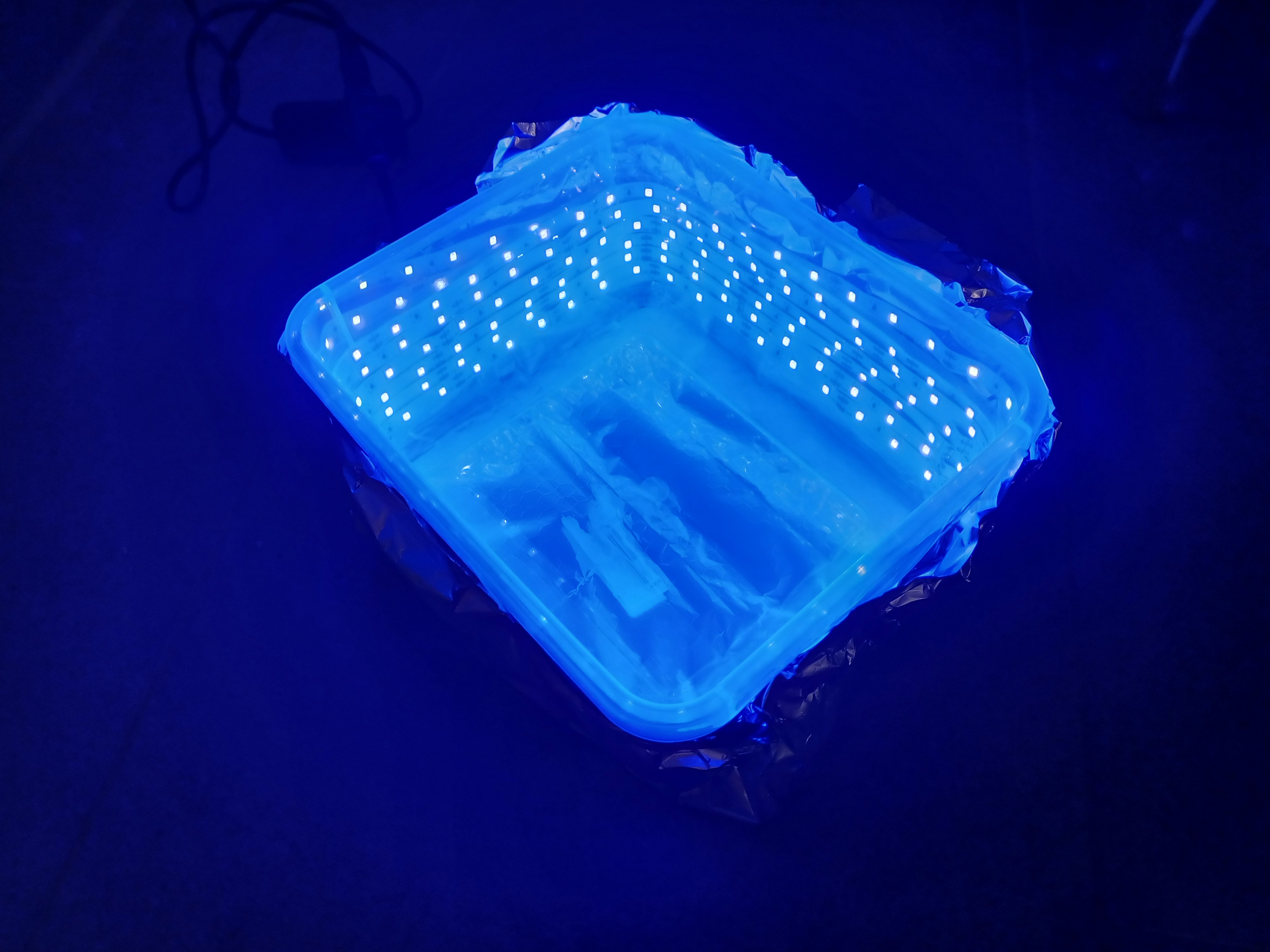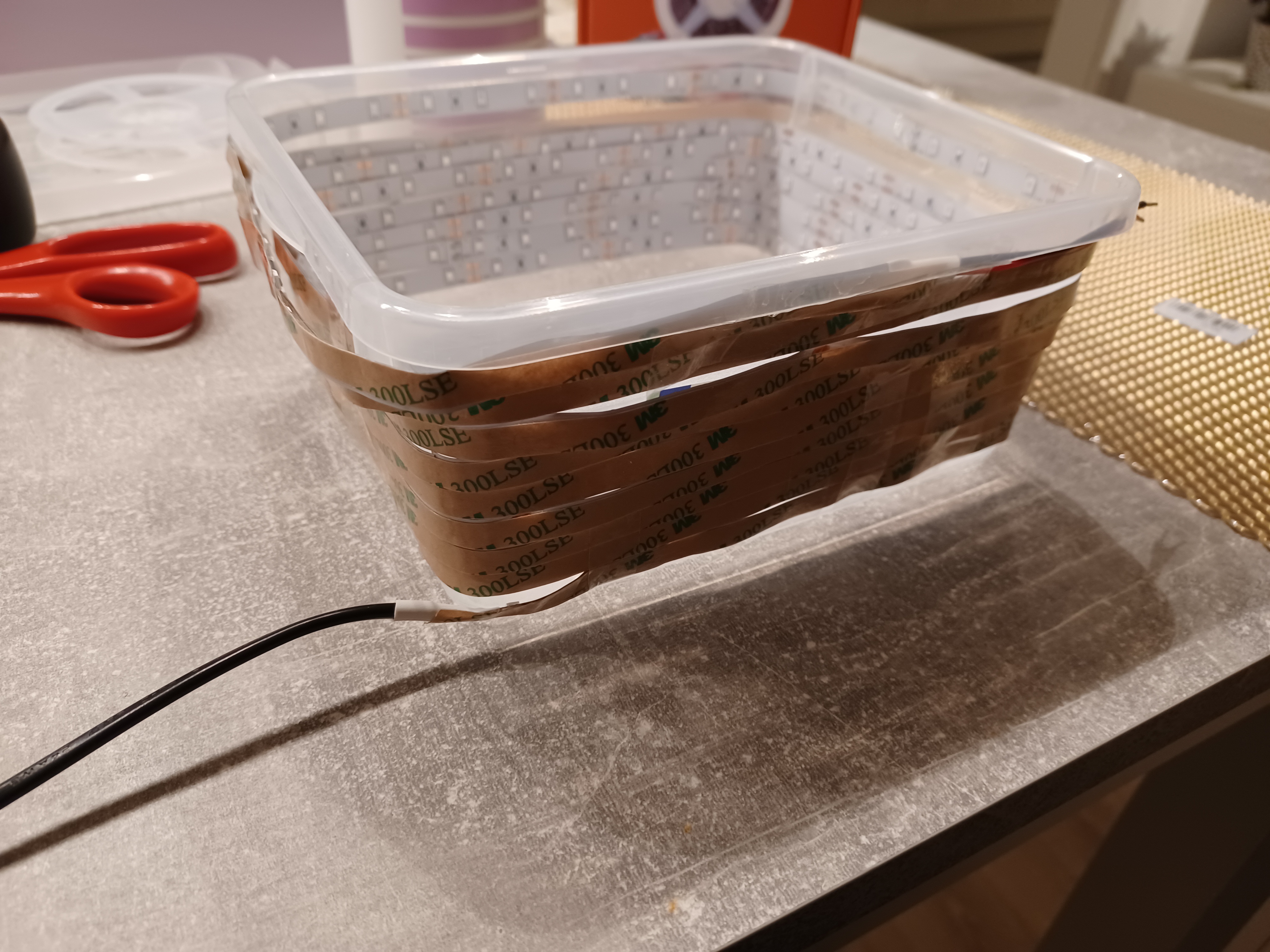 Die PVC-Box komplett mit dem Leuchtband umwickeln