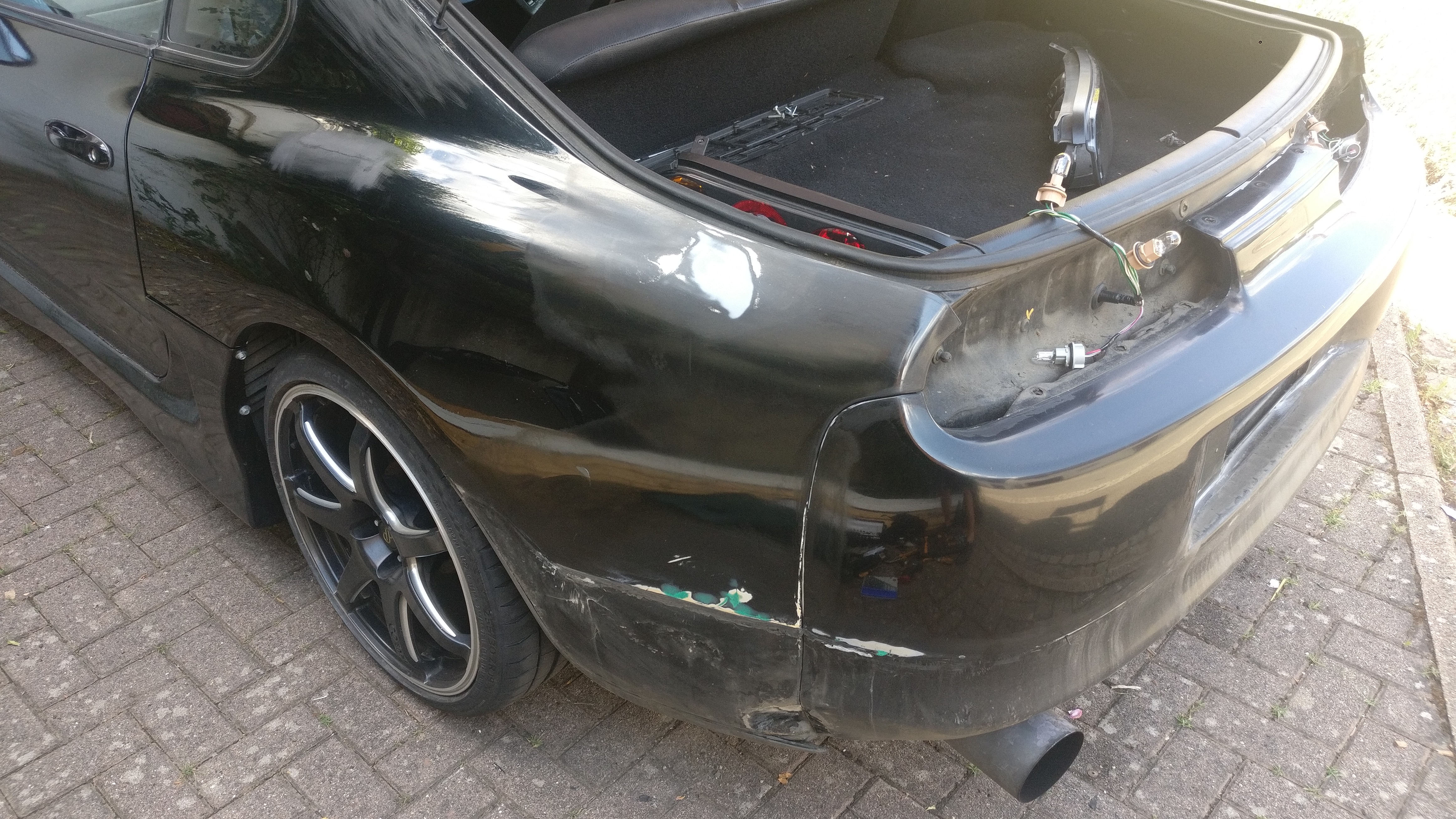 Das erste Bild direkt beim Kauf (foliert, Originalfarbe war schwarz), das zweite nach dem Lackieren, schon mit den neuen 19" Enkei Izumo Felgen.