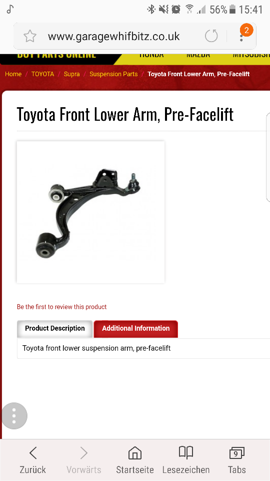 Hallo, habe im Internet eine Seite gefunden aus den USA welche die Front Lower Controll Arms (Querlenker Vorderachse Unten) recht günstig anbieten für ca. 35$ das Stück links und selbe rechts. Käme natürlich noch Versand und letztluch Zoll dazu.