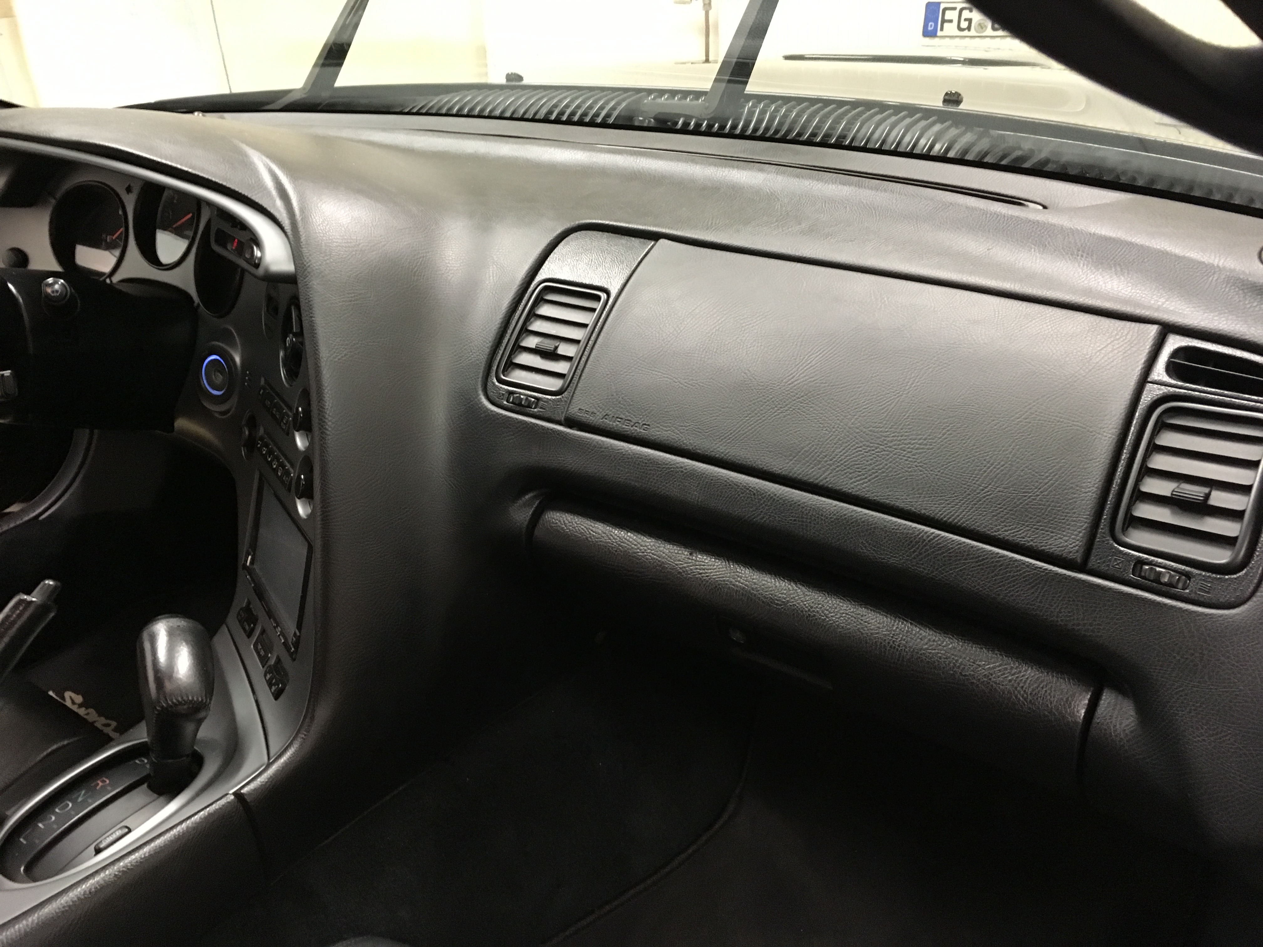 Airbag und links die Seite gesäubert der Rest vorher und speckig.