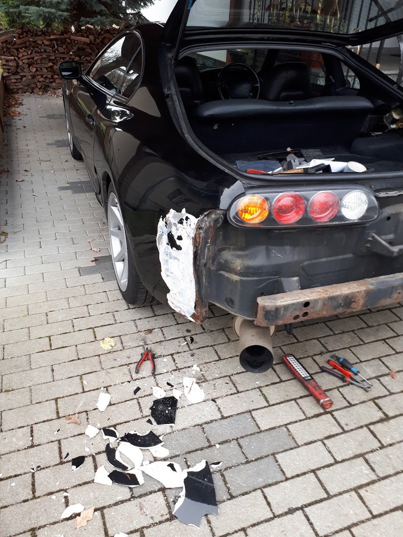 nachdem ich am Wochenende mit Hammer und Meißel meine Heckschürze für die Lackiervorbereitungen abgenommen habe, bin ich