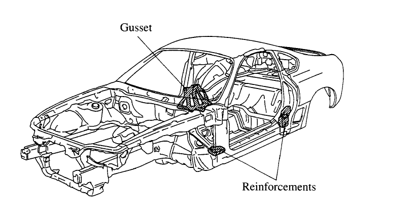Aha, jetzt verstehe ich, das ist die Targa Version von 1993. Das andere war die Coupe Version. In dem letzten Bild erkenne ich auch deutlich die Verstärkungen an allen 4 Säulen (beim Coupé waren die nur an den hinteren Säulen dargestellt). Aber was ist das in der Mitte, Verstärkung am Getriebetunnel?!