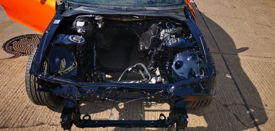 Dann ging es der orangenen an den Kragen und dank Herr Thoss ist der Unfall auch wieder beseitigt und ist super geworden. Motorraum wurde dann auch noch lackiert das es besser aussieht und nicht mehr so gebastelt. Und da der Motor einmal draußen war ist es auch logisch das so zu machen.