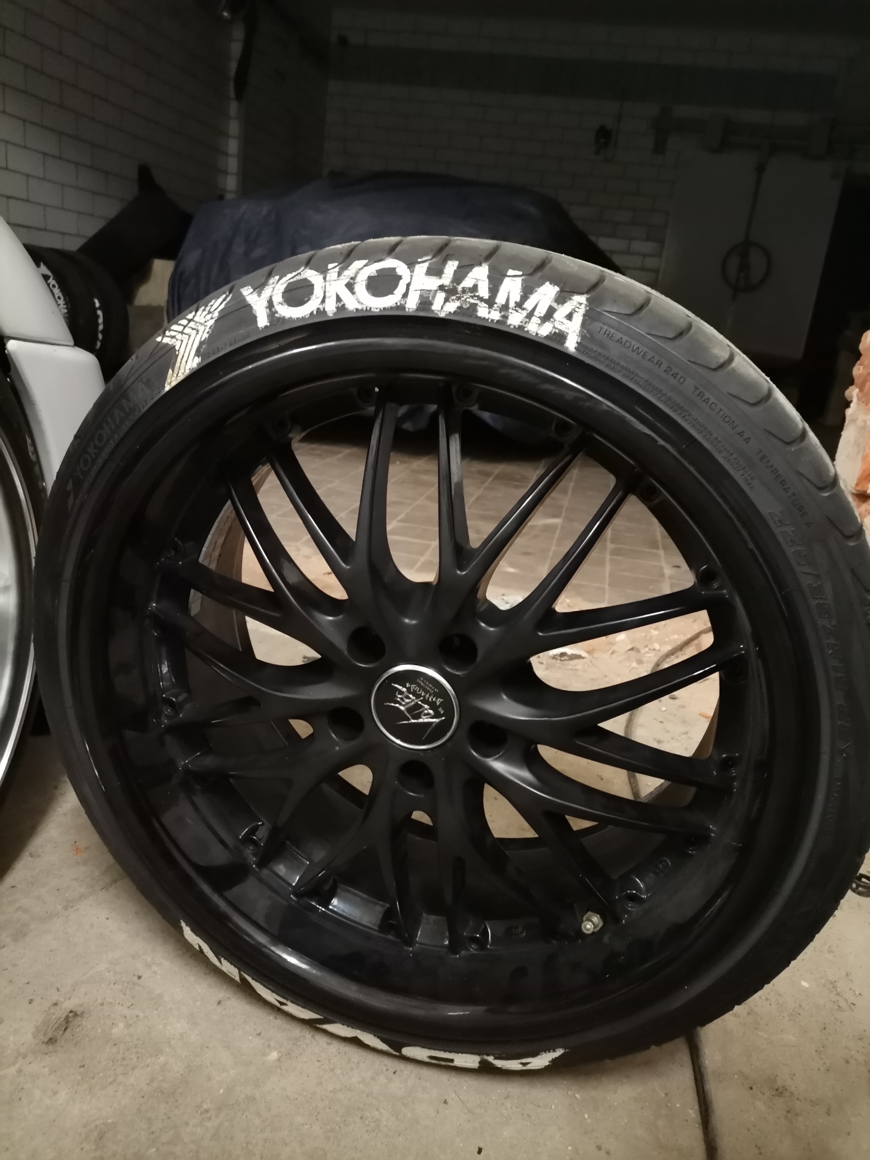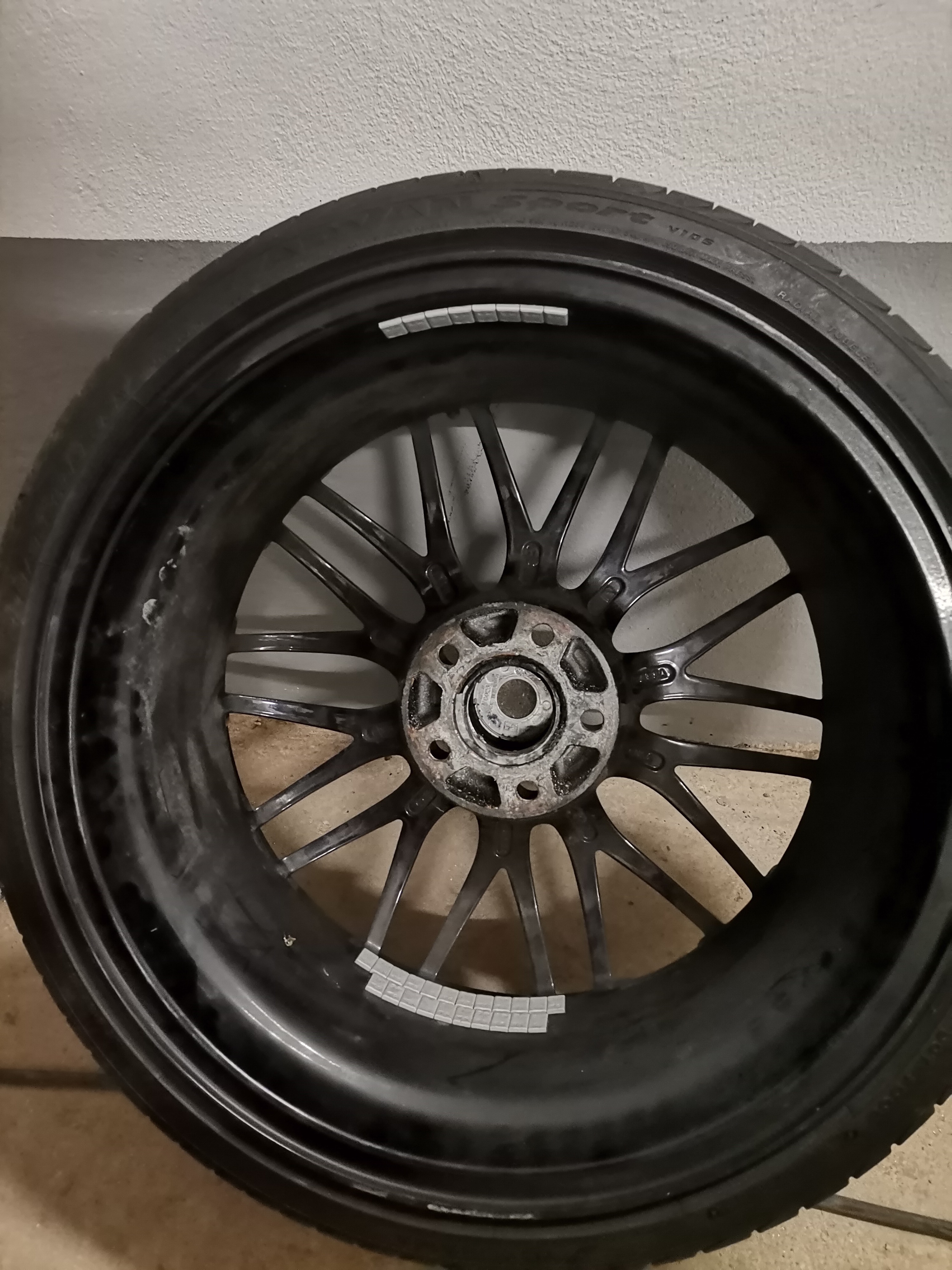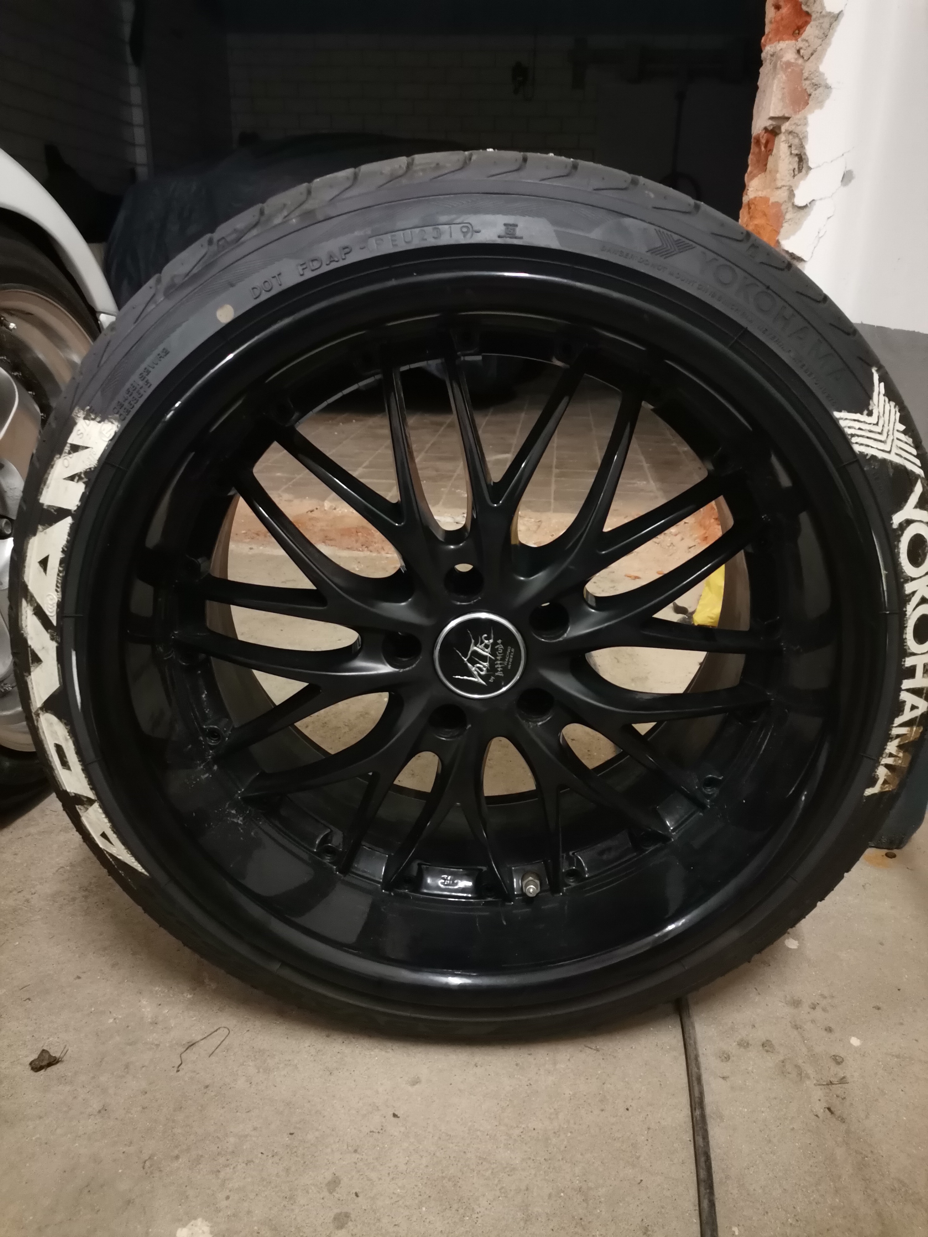 Die Felgen stehen zurzeit auf Advan V105S Reifen welche 1 Jahr alt sind in den Maßen: vorne 225/35/19, hinten 255/35/19.