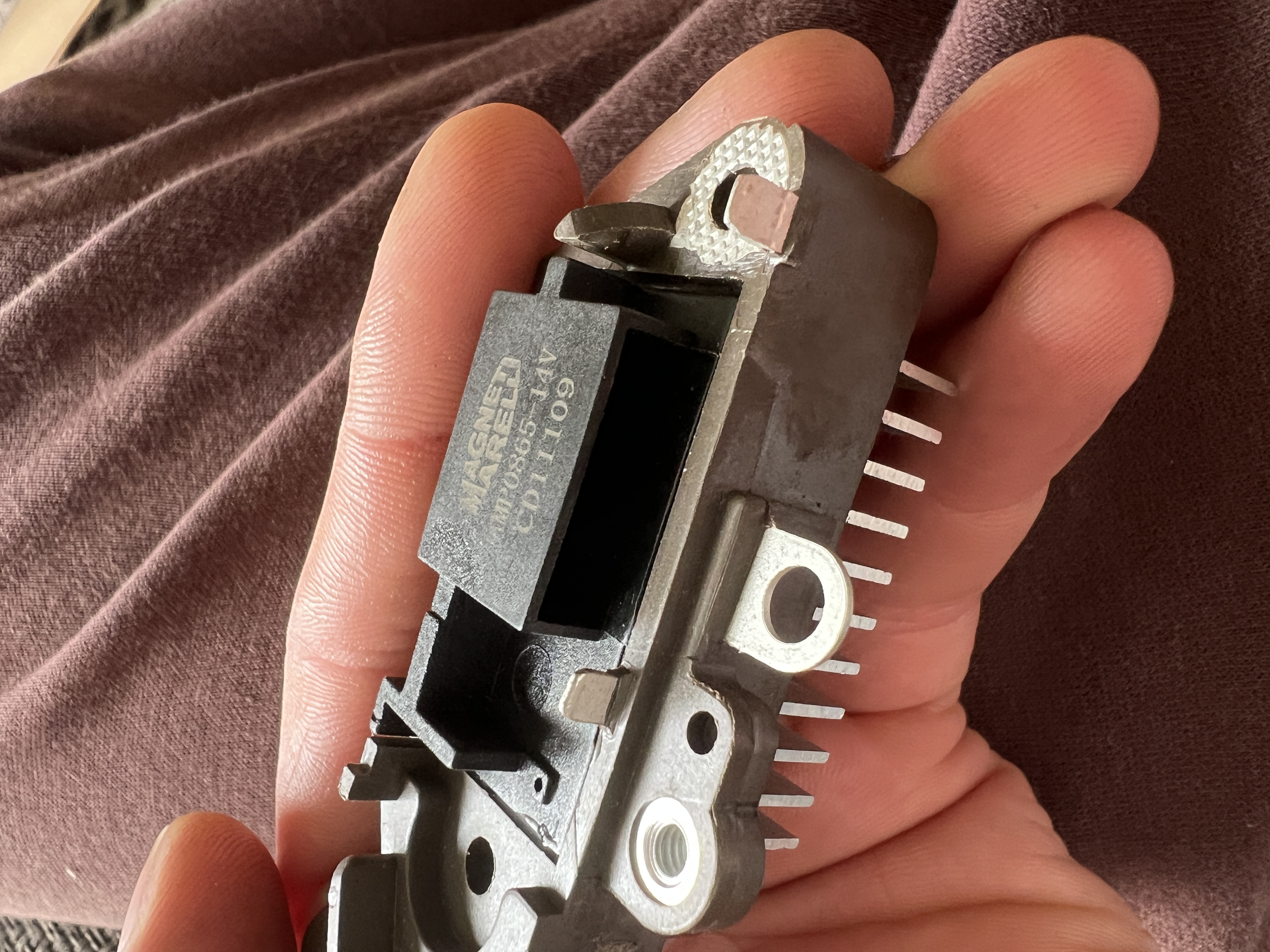das wird wohl der Regler von der Lichtmaschine sein? Das Problem hatte ich auch, das ist wohl ein Widerstand oder so. Ohne den hat die Lichtmaschine nicht geladen, d.h. du brauchst einen anderen Regler.