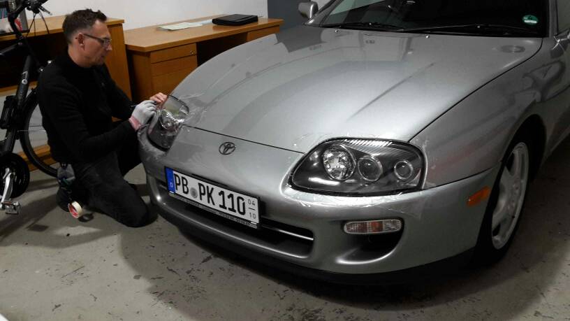 Strinschlagschutz auf den frischen Scheinwerfern