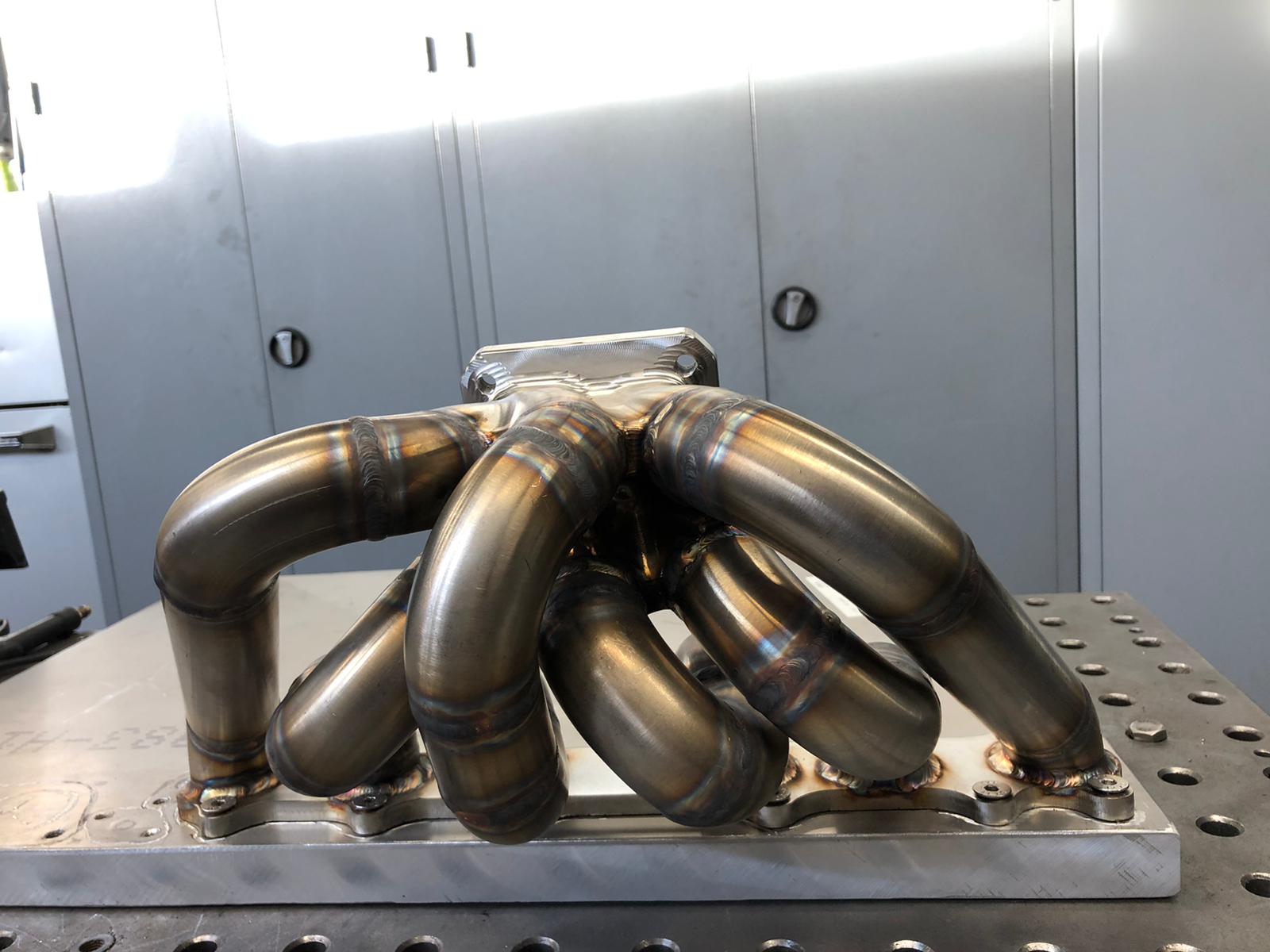 So, da ich nun auch auf unser hauseigenes Kit umsteige habe ich noch ein paar Bilder von meinem Krümmer den wir jetzt auch gebaut haben. Ein paar Detail Bilder.