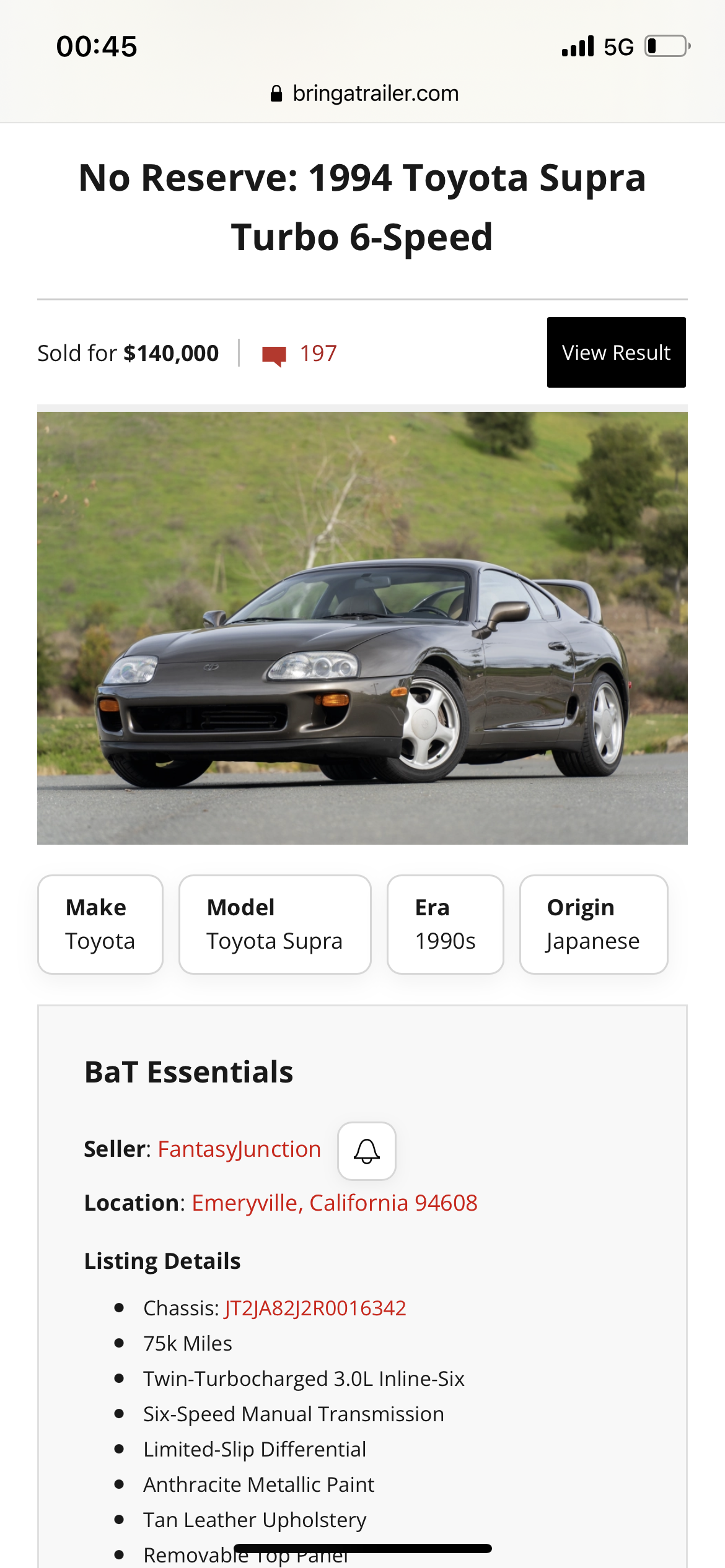 Ich weiß nicht wer es mitbekommen hat. In den Staaten ging mein 1a1 innen Beige Us Schwestermodell für geschlagenen 140.000$ bei Bringatrailer über den Tisch. Absolut heftig finde ich, wenn man überlegt es war keine Low Milage Kiste und ist nicht unverbastelt. Klar toller Zustand, aber 140 Schleifen für ein recht normales Auto. Verrückt.