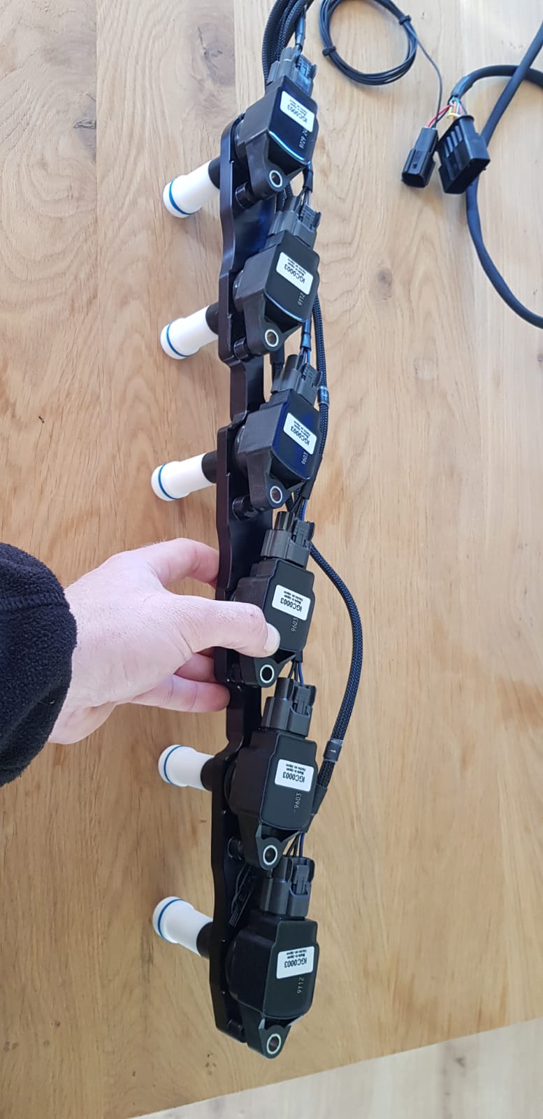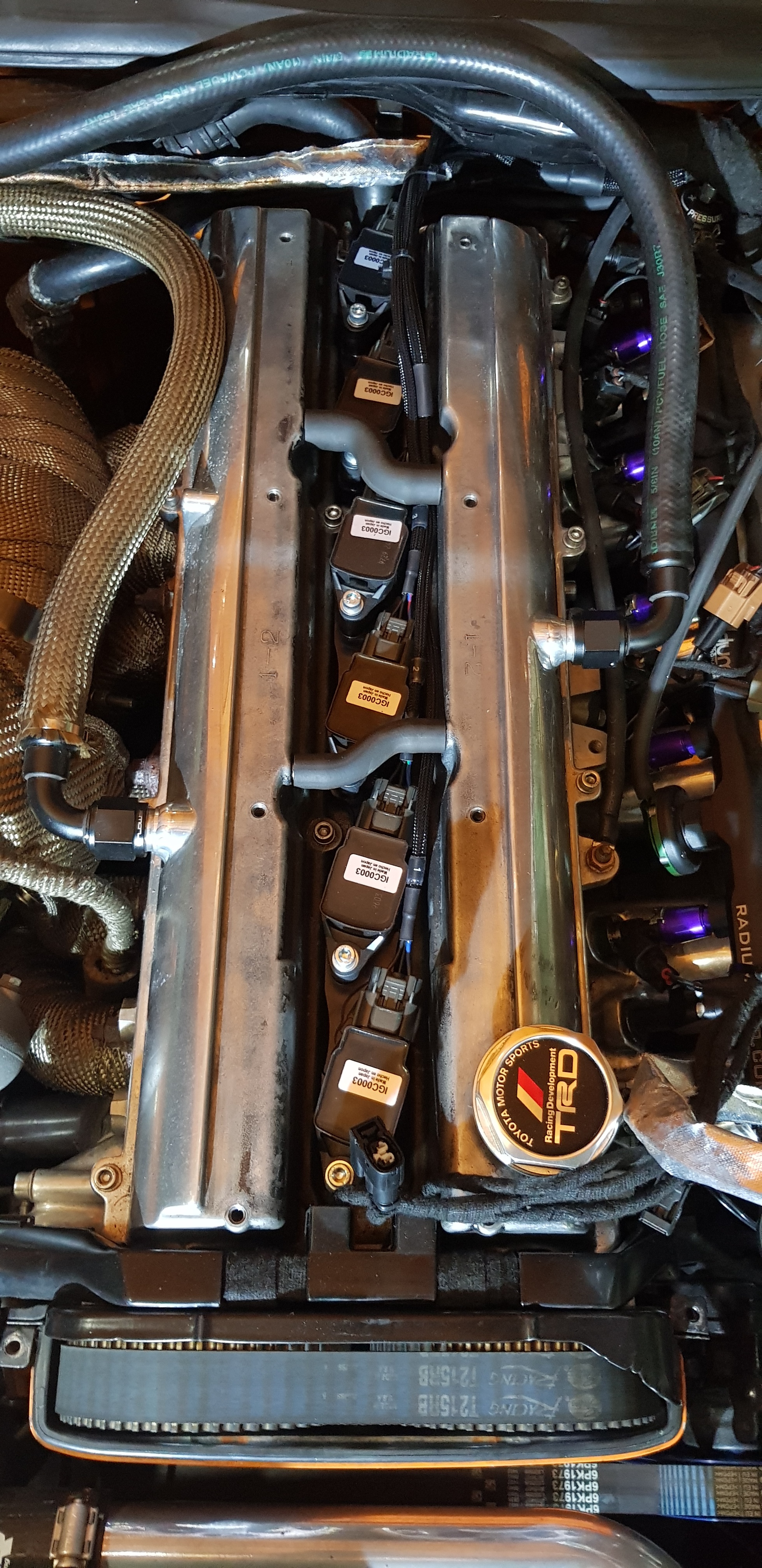 Ich verfolge ein bisschen die Firma Wiring Specialties und habe letztes Jahr gesehen, dass die ein für die Supra angepasstes Kit mit Nissan GTR R35 Spulen anbieten. Mit Spulen, Halter und Kabelbaum. Der Kabelbaum war aber nur für die Spulen selber....also nicht bis zur ECU.