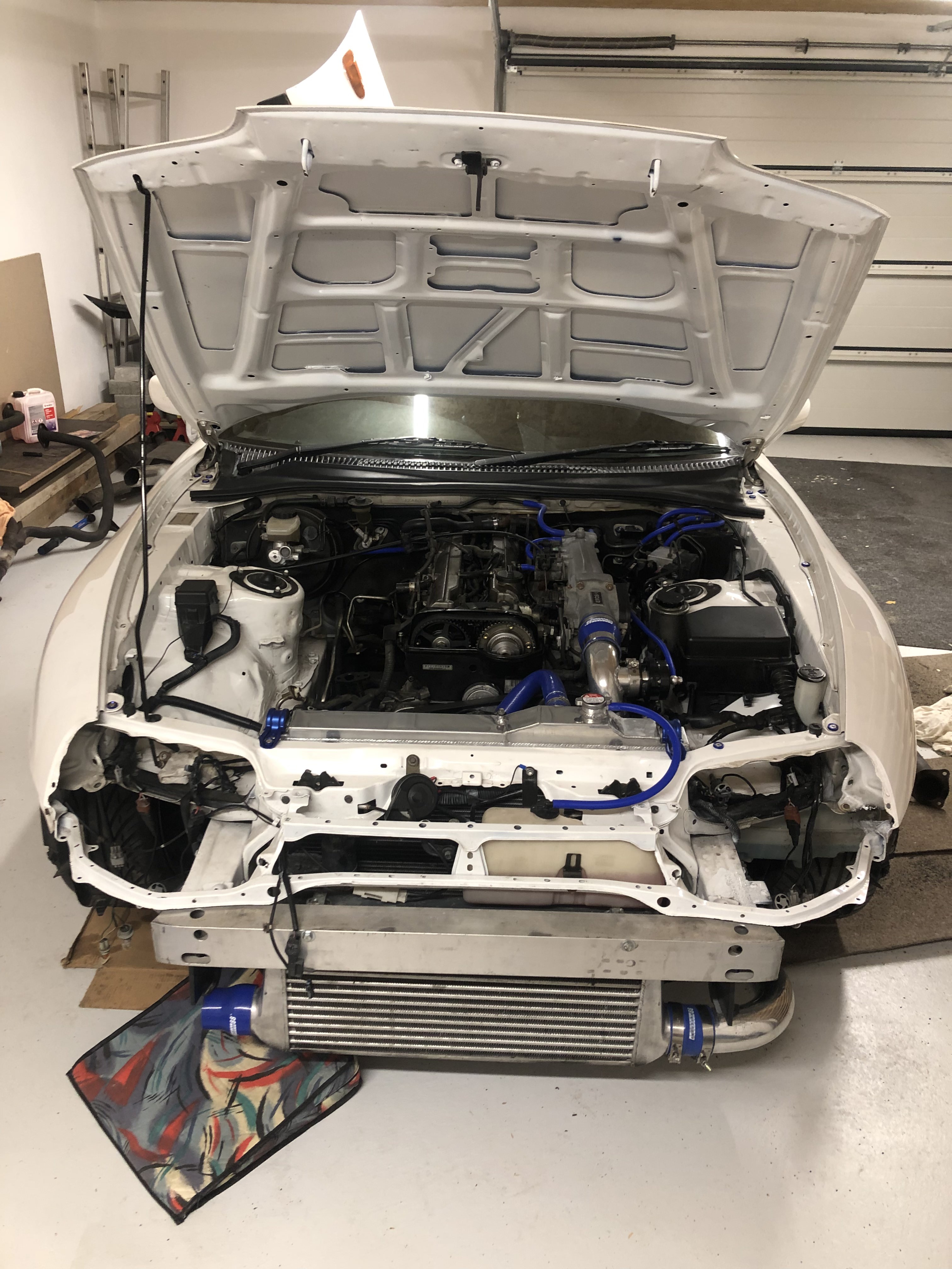Seit dem Kauf hat sich noch nicht viel getan, außer dass die beiden J-Spec Turbos zur Überholung und Aufwertung mit Stahlinnereien ausgebaut sind; seitdem steht sie erstmal in der Garage und ich muss mich in Geduld üben.
