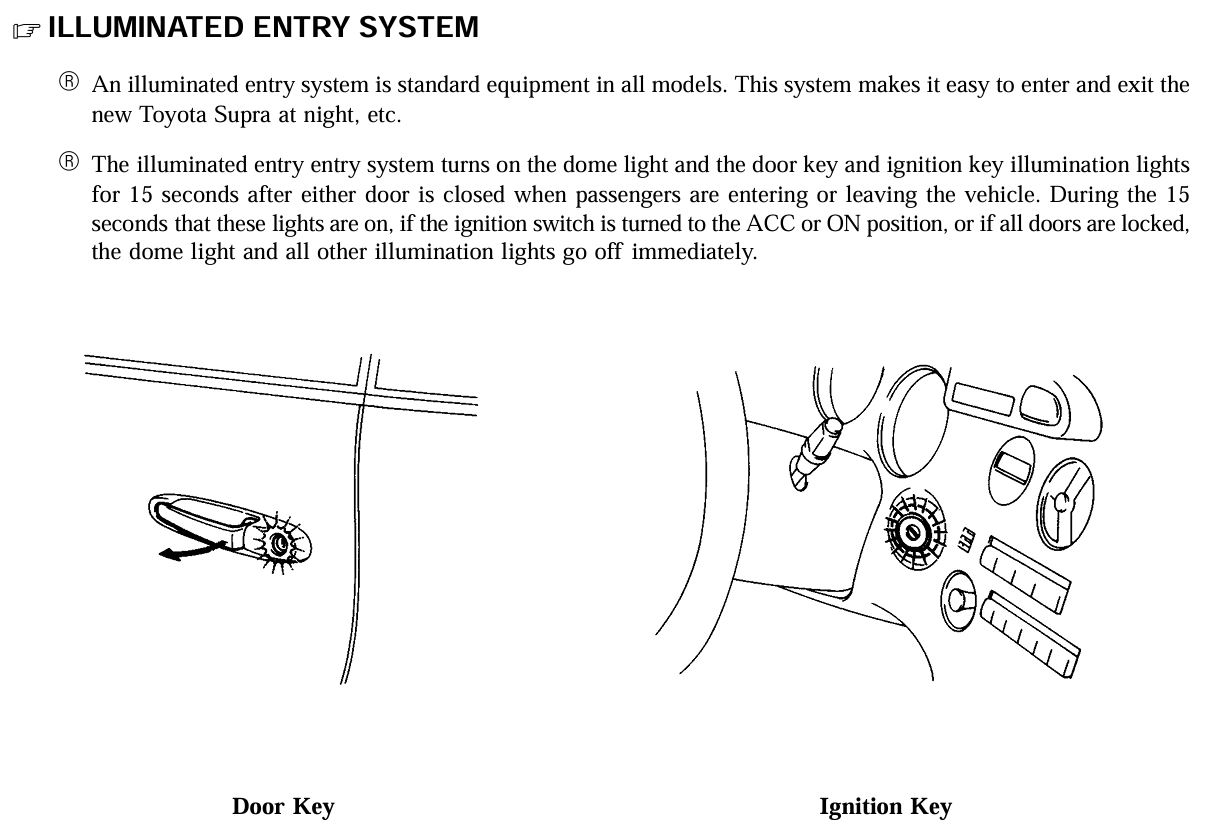 Allerdings habe ich eine kleine Diskrepanz bezüglich Leuchtdauer festgestellt, als ich es mir die Toyota-Beschreibung dazu angesehen habe. Dort steht was von 15s für Türschloss, Zündschloss und Leselampe nachdem die Türen geschlossen wurden. Bei mir sind es max. 5s. Jetzt wollte ich mal fragen, ob jemand bei seinem Supra schauen kann wie lange die Lampen leuchten. Entweder stimmt was an meiner Elektrik oder in der Beschreibung nicht.